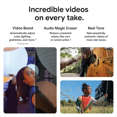 - The Pixel 8 Pro camera gives you amazing video quality; it records sharp, smooth videos, even in dimly lit places; and Audio Magic Eraser uses Google AI to reduce distracting noises, like cars and wind