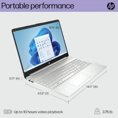 HP 15-DY5033 12th Gen Intel®️ Core™️ i3-1215U 1.2GHz up to 4.4GHz 256GB SSD | 8GB DDR4 RAM | 15.6″ diagonal FHD, Intel UHD Graphics TOUCHSCREEN Display, Windows 11, NATURAL SILVER, 1 Year Warranty
