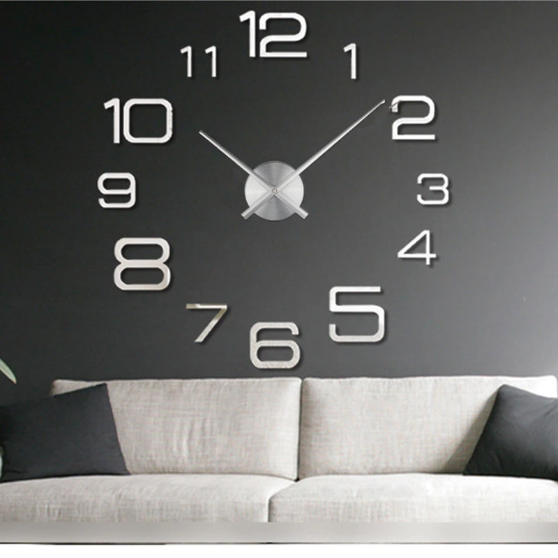 2023 Modern Design Large Wall Clock 3D DIY Quartz Clocks Fashion Watches Acrylic Mirror Stickers Living Room Home Decor Horloge | Gold Colour