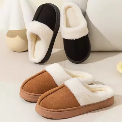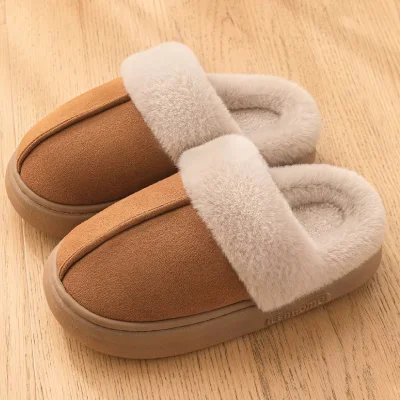 Unisex Fashionable Warm Suede Fluffy Anti-Slip TPR Indoor Slippers